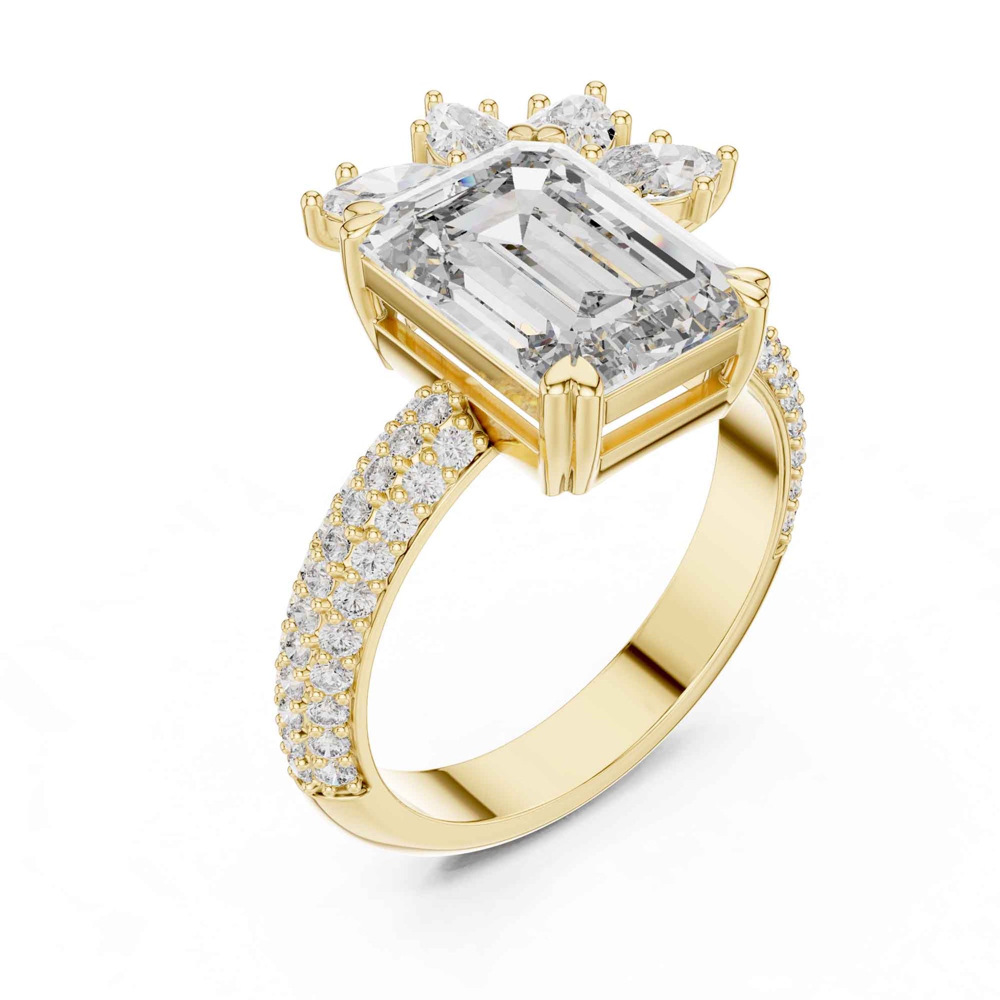 4 Carat Emerald-Cut Diamond Engagement Ring with Floral Accent and Pavé Band