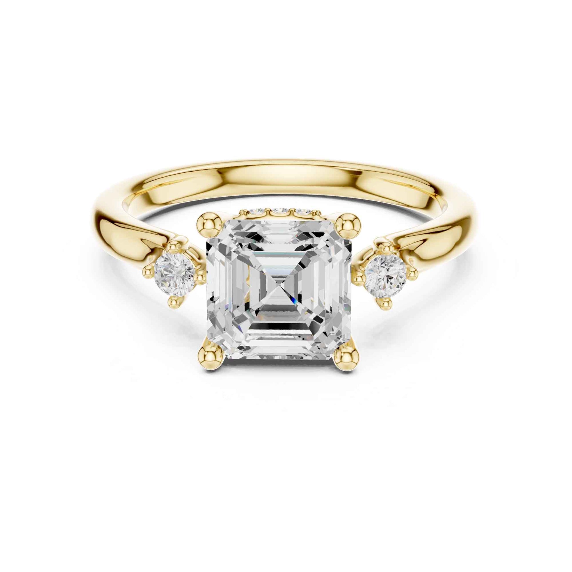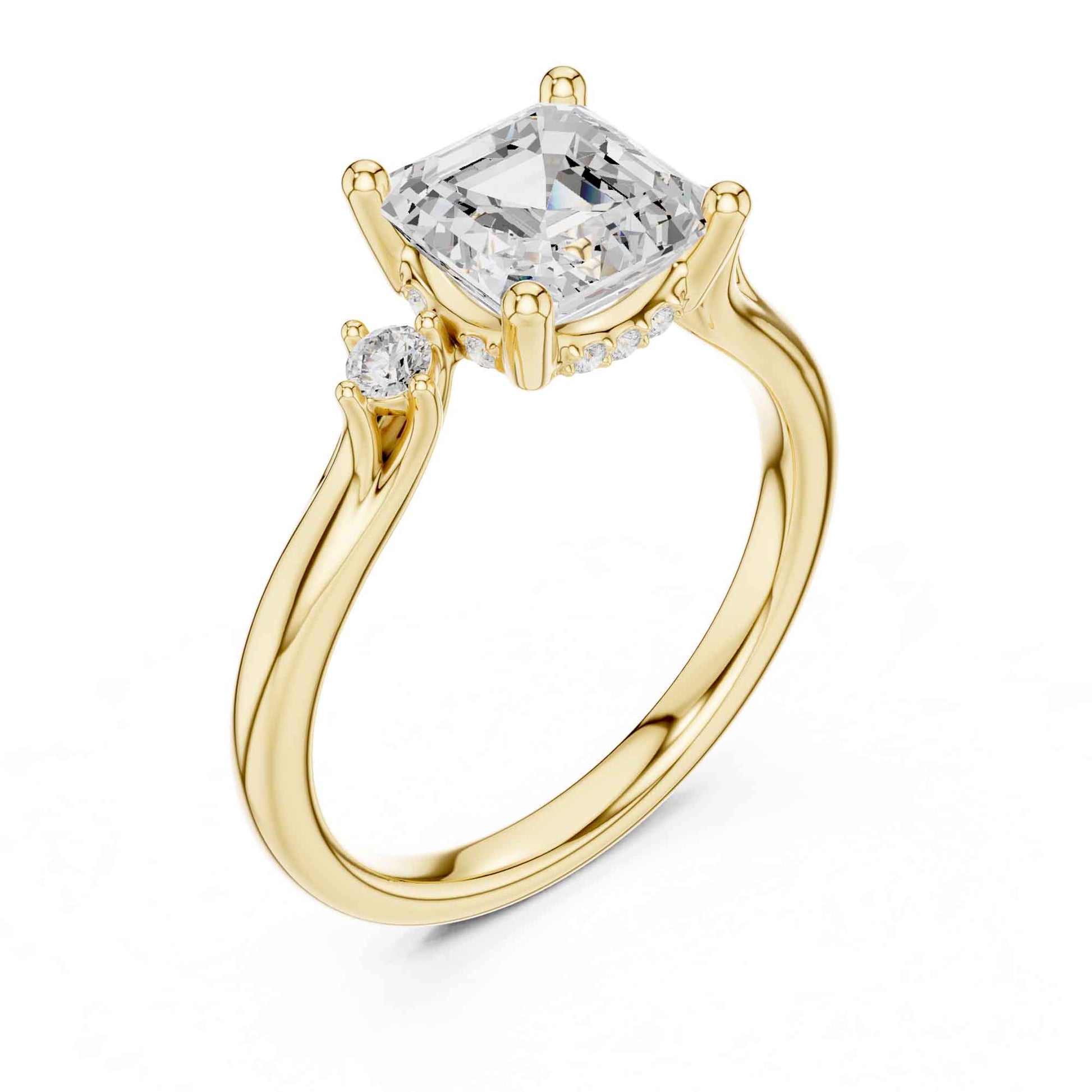2 Carat Asscher Cut Diamond Ring with Round Side Diamonds Elegant Engagement Ring