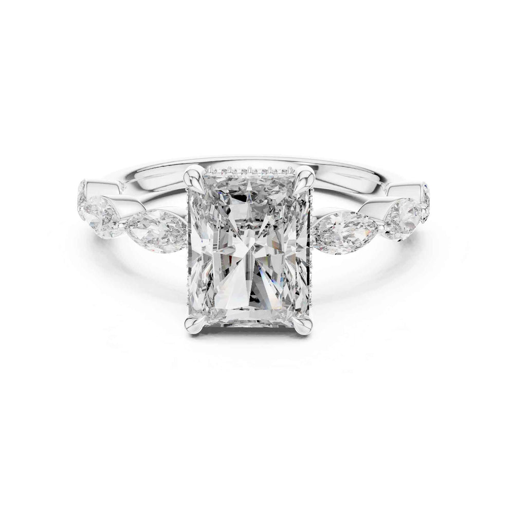 2 Carat Radiant Cut Lab Grown Diamond Engagement Ring with Marquise Side Stones