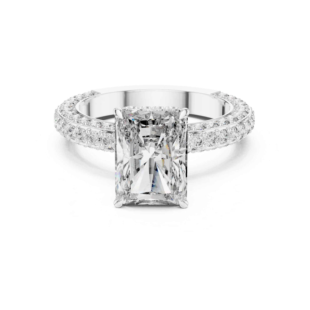 4 Carat Radiant Cut Lab Grown Diamond Engagement Ring with Pavé Band