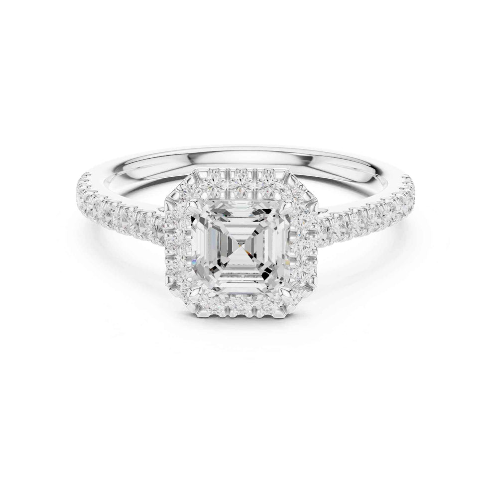 1 Carat Asscher Cut Lab Grown Diamond Halo Engagement Ring