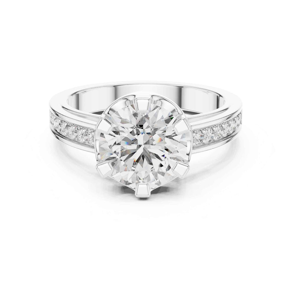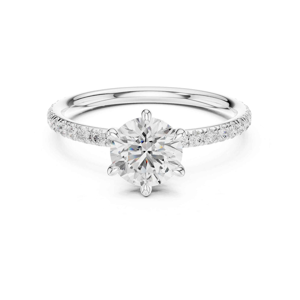 1 Carat Round Cut Lab Grown Diamond Solitaire Engagement Ring with Pavé Accent Band