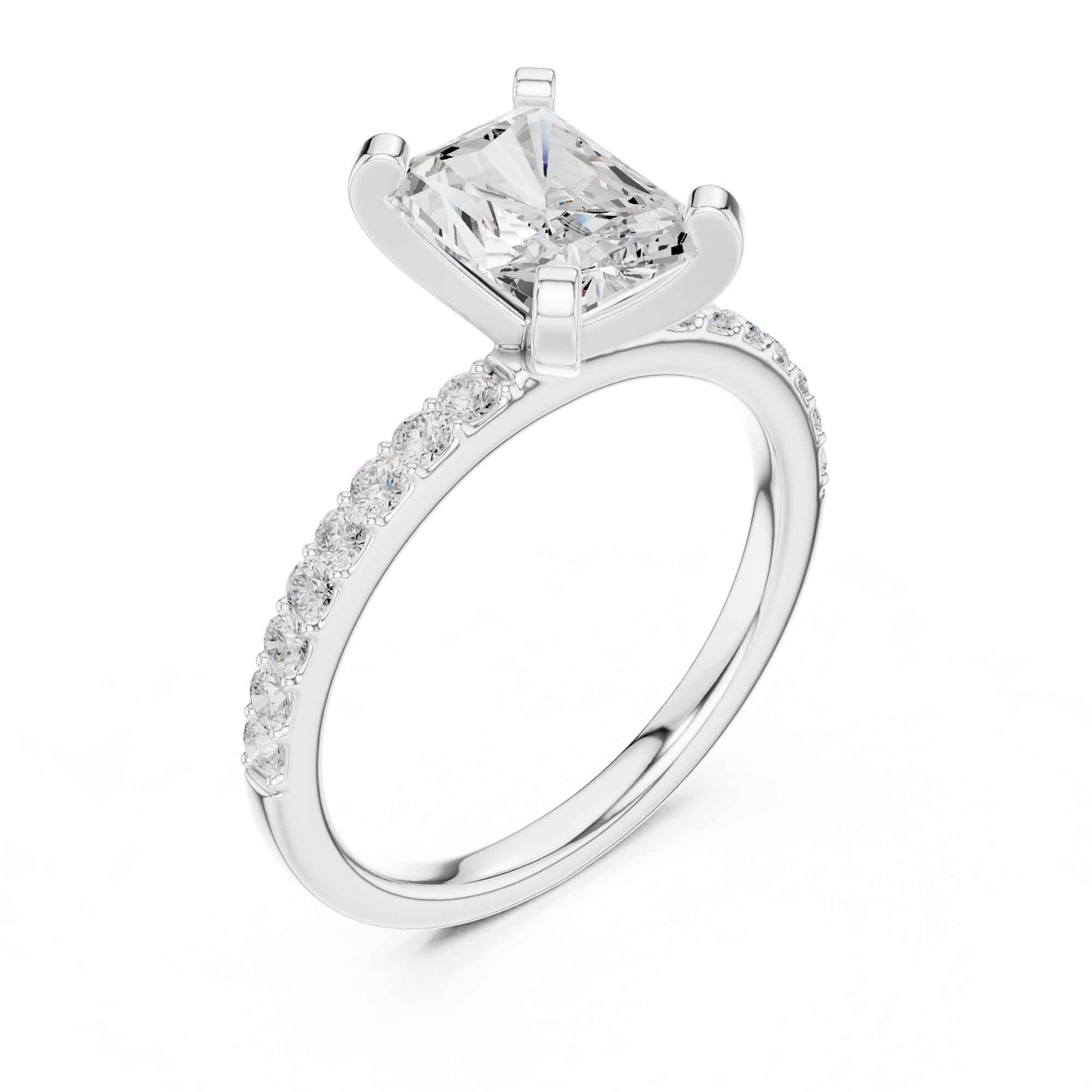 2 Carat Radiant Cut Lab Grown Diamond Engagement Ring with Pavé Band