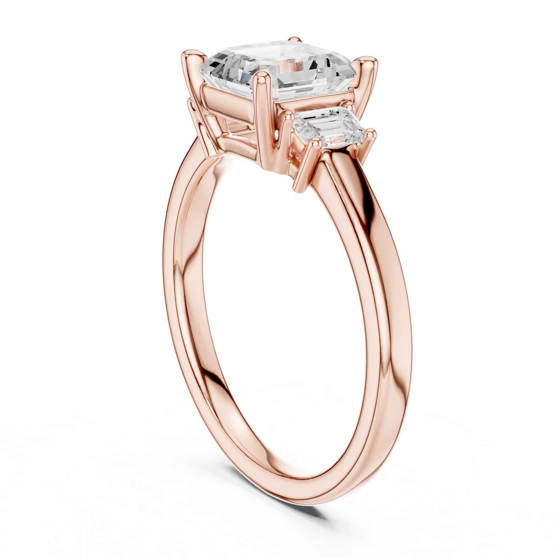1.5 Carat Asscher Cut Lab Grown Diamond Three Stone Engagement Ring