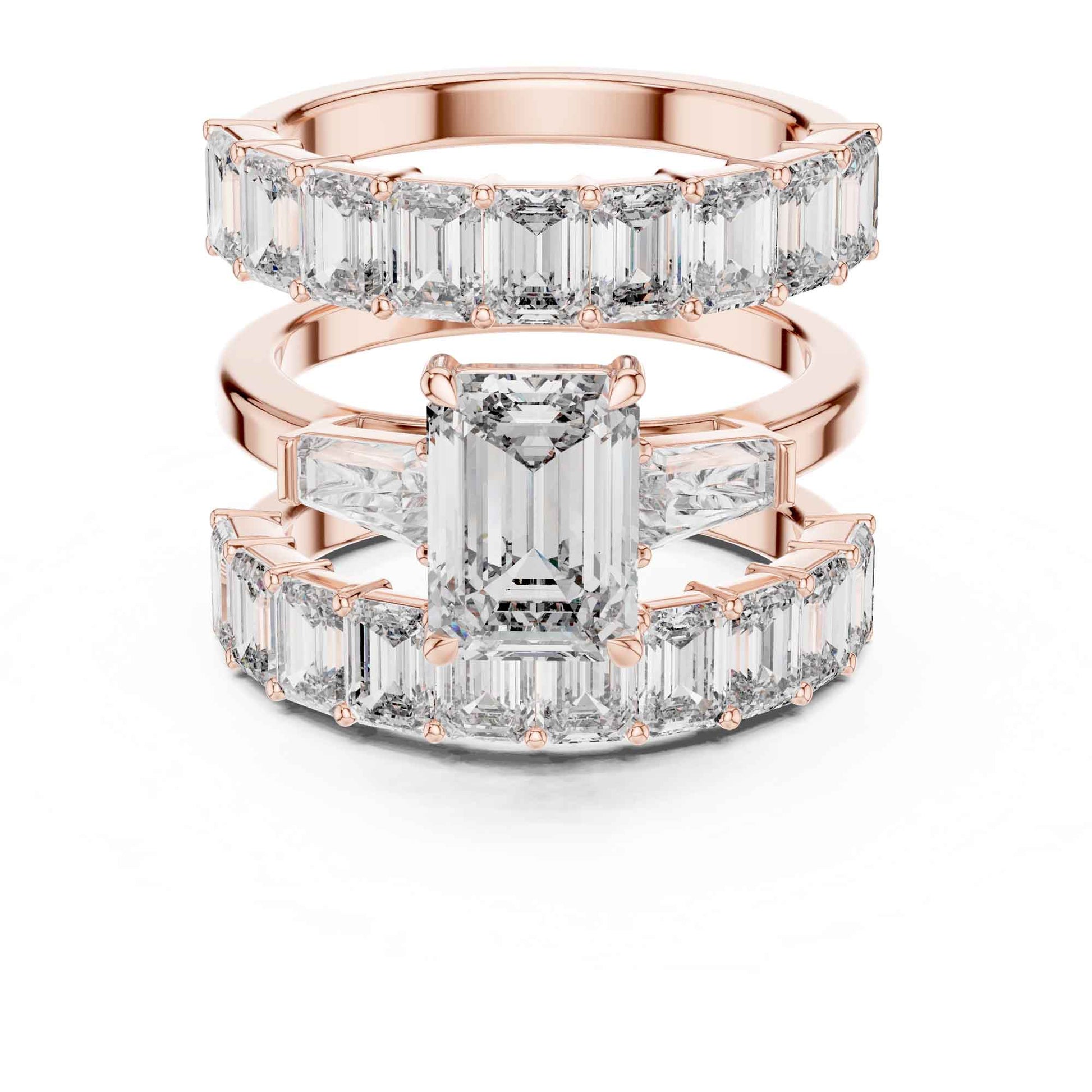 2 Carat Emerald-Cut Diamond Bridal Set with Matching Eternity Bands