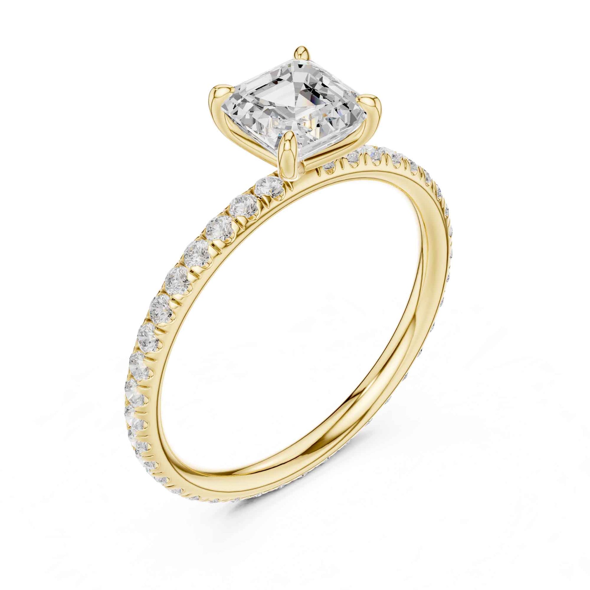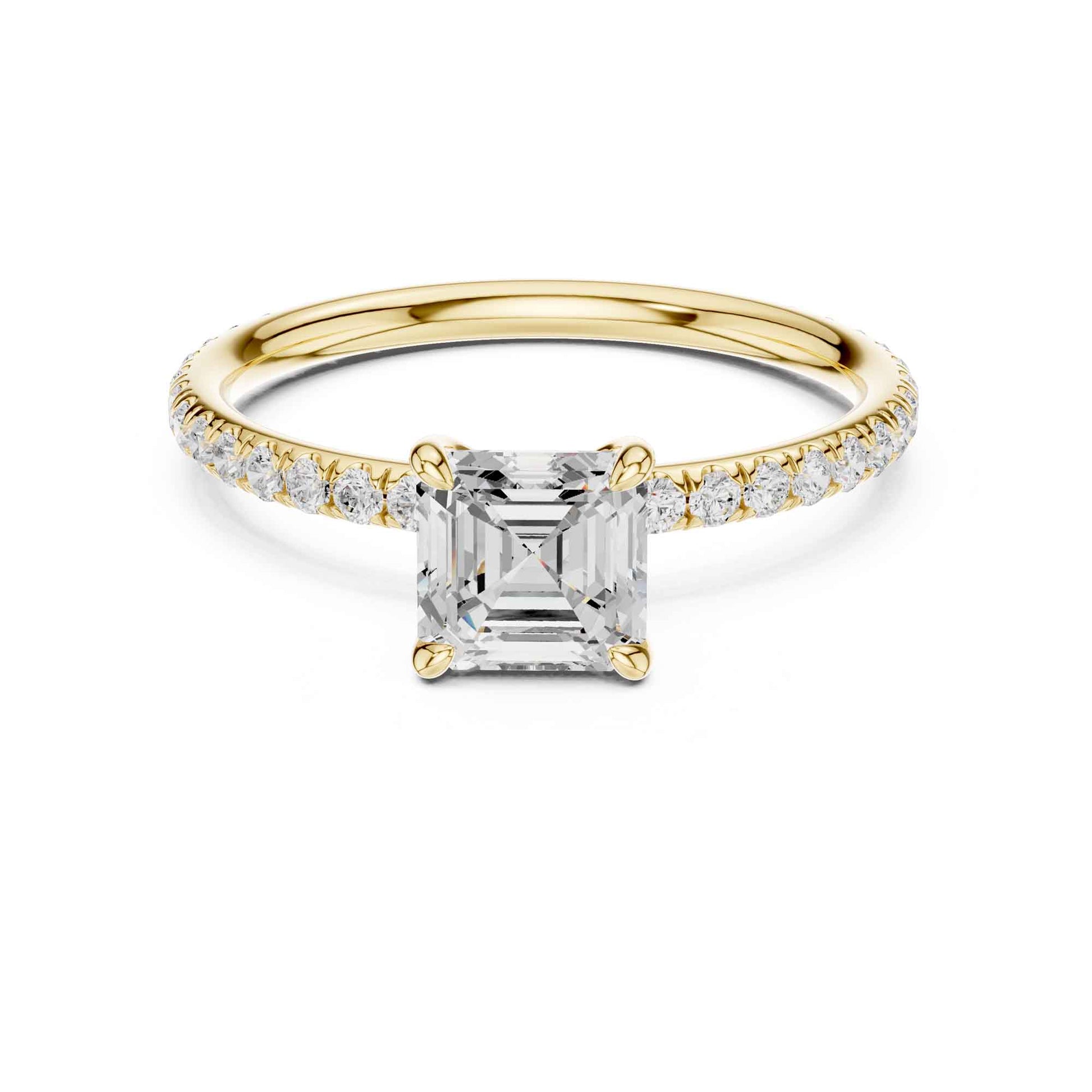 1 Carat Asscher Cut Lab Grown Diamond Engagement Ring with Pavé Band