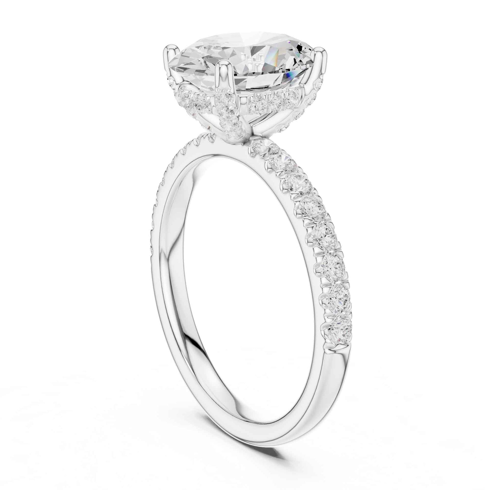 2 Carat Oval Cut Lab Grown Diamond Pavé Engagement Ring